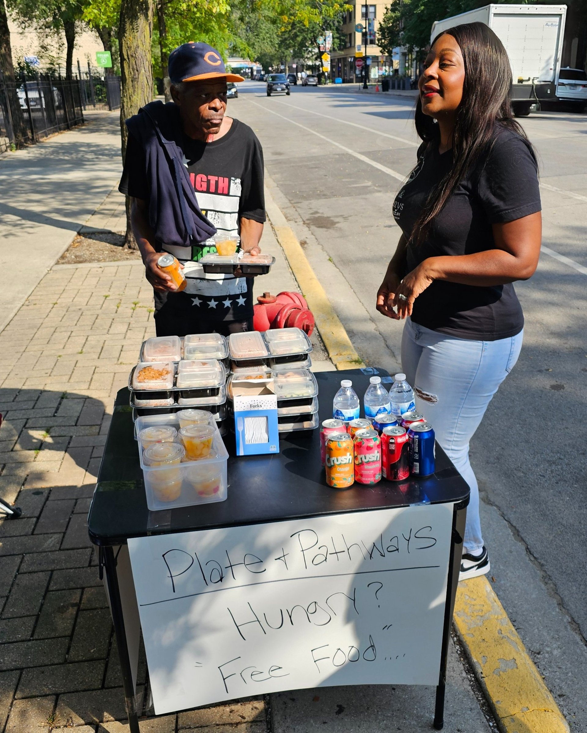 While navigating the daily struggle of where to find shelter, he met Alicia Spradley — the founder of Plate and Pathways — while she was passing out hot meals. Spradley was hosting one of her monthly pop ups where she provides home cooked meals to Rogers Park and Edgewater’s unhoused population.